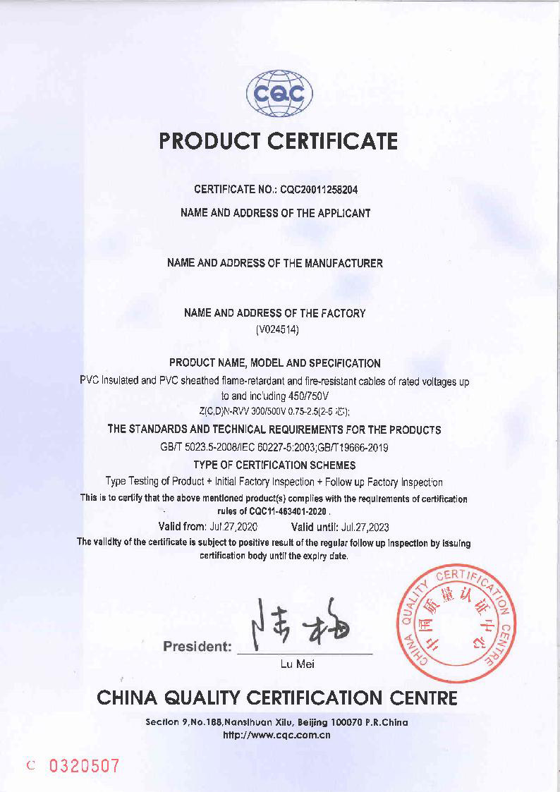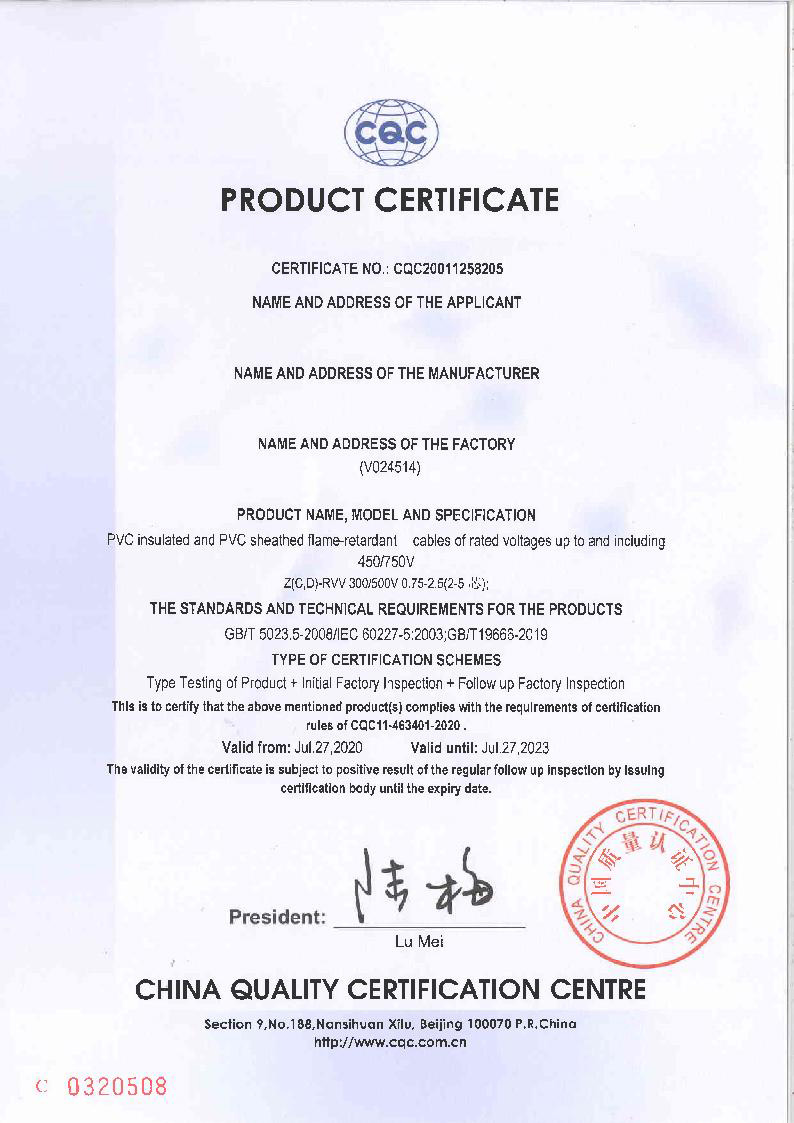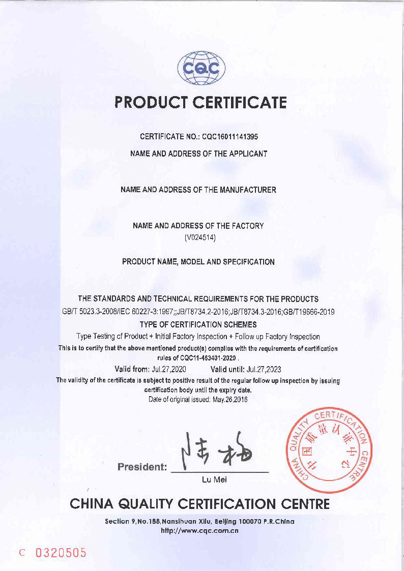 產品通過中國國家強制性產品認證,ISO9001質量管理體系認證等管理體系認證;